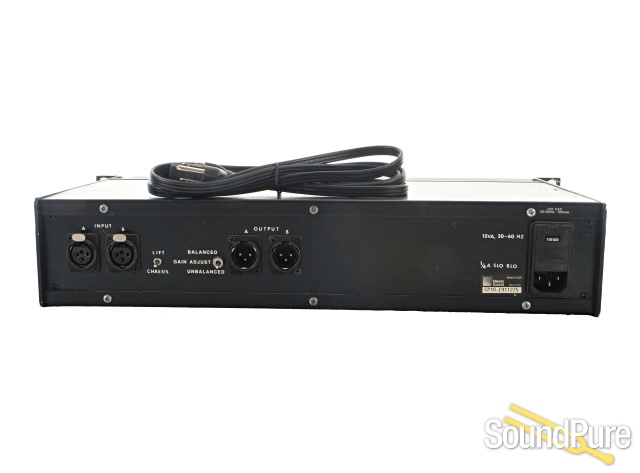 Occupying 3.5 inches of rack space, the front panel features marked controls, including individual In/Out switches for each equalization band. Calibrated Center Frequency, Bandwidth, and Boost/Cut controls provide precise adjustments. The complement-phase circuitry guarantees controlled phase distortion, even at extreme settings, with a dynamic range exceeding 110 dB in operation.