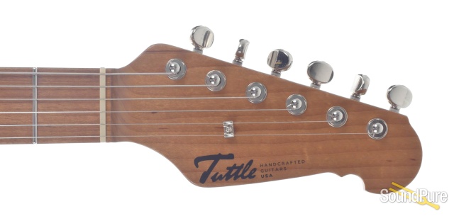 Michael Tuttle never ceases to amaze us with his incredibly built guitars and yet again we were stunned when we first opened the case on this Classic S. The burst is to die for on this guitar and with a great looking (and feeling!) roasted maple neck you get a guitar that has a classic look taken up a notch from the competition. Tuttle #520 feels amazing and if you've ever owned or played one of Michael's guitars you know to expect that and you certainly won't be let down here. This guitar made us want to sit down and play endlessly and really is the type of instrument that should motivate a player to spend more time on it, it's that good! If you've been a fan of the S style guitars in the past you should definitely call us about Tuttle guitars and find out how much better they can be when built by a master craftsman!
