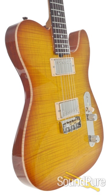 In this video, Sound Pure electric guitar specialist Eddie Berman plays the Michael Tuttle Tuned T Ice Tea Burst Electric #500-F through a Suhr Bella Reverb Head and a Mesa Boogie Compact Widebody Closed-Back 1x12 Cabinet with a Xotic Effects Soul Driven Overdrive/Boost Effect Pedal and a Strymon El Capistan dTape Delay Effect Pedal.