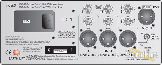 · Four distinct inputs can be optimized for any source · Instruments – Twin Topology® DI channel; dual-triode 12AT7 vacuum tube or discrete FET solid state · Microphones – discrete solid state HV-3 microphone preamplifier · DAW or tape outputs – Discrete solid state line level amplifier · Guitar power amp inputs – Speaker Soak™ technology · Powerful yet musical tonal shading · Two bands of mastering-grade NSEQ-2 parametric Eq; 20 Hz to 20 kHz center frequency, 0.4 to 4.0 Q · Optimized DI input for any instrument with variable 470 k / 2 M / 10 M impedance · Nine outputs for unlimited functionality · Patented Re-Amp outputs with custom-designed magnetics emulate Les Paul® and Strat® pickups · Audiophile headphone output · Balanced and unbalanced monolithic outputs · Balanced and unbalanced discrete FET outputs · Microphone level output with large-geometry DIT-01 transformer: -3 dB 3 Hz – 300 kHz · Effortlessly musical performance at all dynamic levels · Input headroom >100 V, output headroom > 30 V · 100% effective hum removal with numerous ground lifts & isolations · Built for critical professional applications · Ultra-clean toroid power supply: internal sub-chassis · Gold connectors, OFC audio wiring, silver Teflon power wiring  |