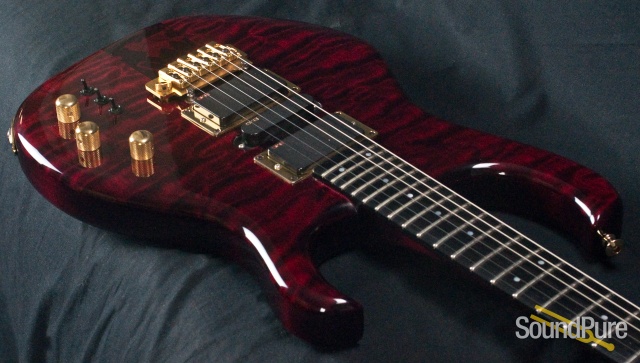 This is one cool and versatile guitar for the player that needs huge amounts of tonal control with flash and style to boot! Configured HSH the selector switches allow for every pickup to be turned on and off independently, and for the humbuckers to be run with two different tonalities independently as well. This allows for any pickup configuration you can dream up to be dialed in quickly and intuitively with a bit of practice. One master volume and one master tone make things easy when flipping around different pickups to dial in the dynamic and tone needed, and the SPC knob is great for boosting the guitars mids on the fly. It's great to be able to fatten up the tone with a little bit of punchy midrange attack via the twist of a knob! The graphite neck plays smooth and easy, and to be honest, it just looks killer on the back of the neck and headstock as well. This is one sleek and fast guitar with tons of tone and flare to match it!