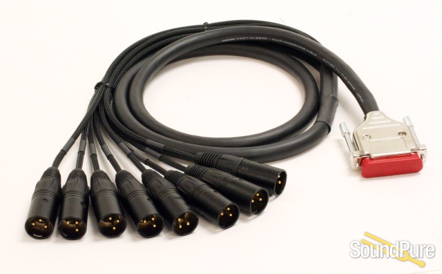 8 channels analog in or out. DB25 to gold pin XLR. Industry standard analog pinout, fits almost everything. Made with Mogami 2932 studio snake cable. Specify male or female XLR's