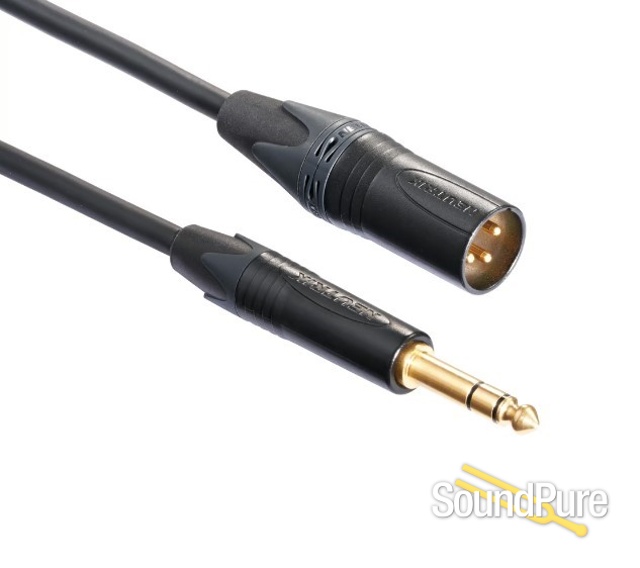 1/4 Stereo Plugs to XLR. Made with Mogami quad cable and gold contact TRS and XLR connectors. The finest you can buy for neutral tone and noise rejection.