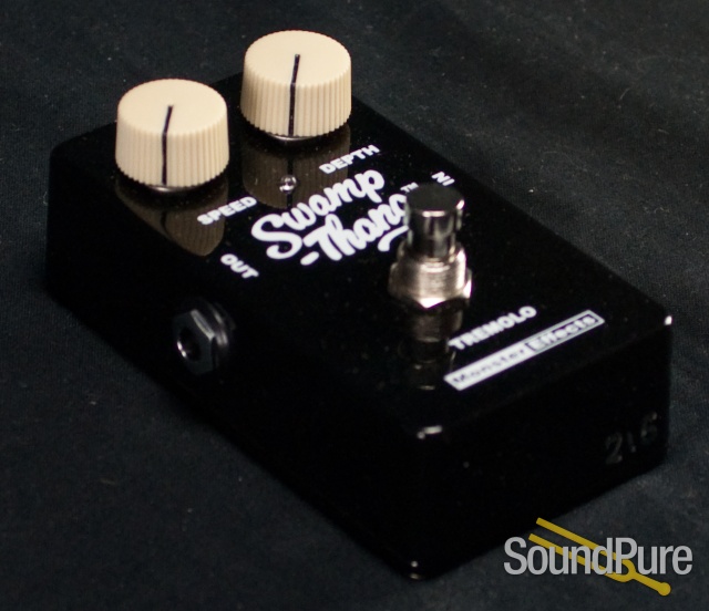 Monster Effects Swamp Thang pedals are made one at a time using the finest materials and parts available. The Swamp Thang is designed to replicate the Fender brown face tremolo in a small convenient package. This tremolo pedal features an all analog design, full sized pots, a Switchcraft power jack, over-voltage protection, true bypass and the ability to be used with either a 9v. pos. center pin or 9v. neg. center pin power adapter or battery. Each Swamp Thang is meticulously hand wired with silver solder and tested using ears, not machines.