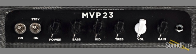 The MVP23 output power is controlled with Morgan’s Power level circuitry. The Power Level control is a big part of the magic. Most guitarists today have spent large sums of money and even more amounts of time working on their pedal boards. Most pedals are not designed to be used with a tube amp on “1”. They were designed to interact with the amplifier at or near the point at which it begins to break up. That is why an overdrive pedal is called an “over” drive. It is driving the amp over that point. Unfortunately that volume can be too loud for most live applications. The Power Level control on the MVP23 solves this. Think of conventional master volumes as a spigot on a garden hose, they choke off the signal to the power section of the amp to a usable level. Most conventional master volumes also affect the way your pedals interact with your amp. The Power Level control behaves like a zoom lens. It limits the size of the output signal that can be produced by the output tubes. It does NOT choke the signal down and therefore behaves identical as if the amp were running at full volume. This means that you can choose the power that you need, anything from ¼ of a watt to 23 watts.