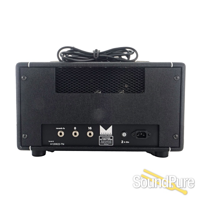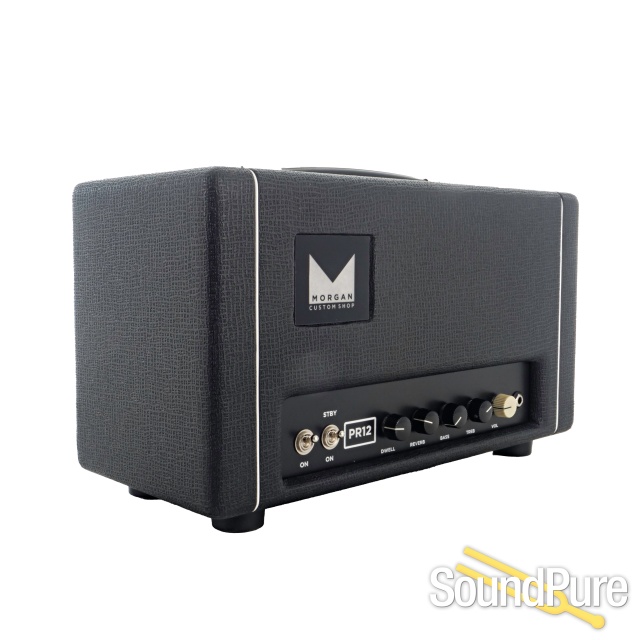 The PR12 starts with the classic black face tone and then beefs up the low end by giving the power supply of the amp more juice so that it doesn’t fart out like the originals. The reverb has also been modified to add a Dwell control. The Dwell control allows you to control the amount of decay in your reverb. This allows you to have a very high reverb mix without washing out your guitar tone. The bass and treble controls interact with each other to give you a wide range of tones. The cabinet is a specially designed fix baffle cab. The fixed baffle design allows the entire cab to resonate with the speaker giving it a much larger sound for such a small box. As with all Morgan Amps the PR12 LOVES pedals and works well with any pedalboard.