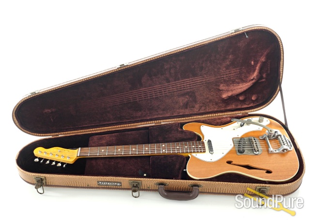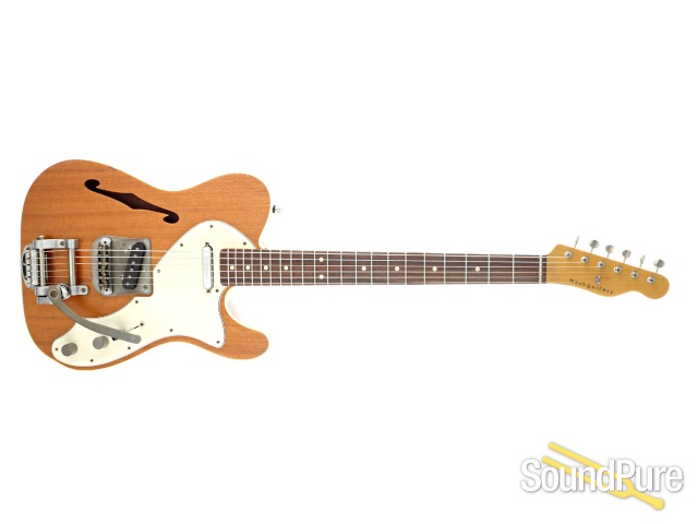 A radical departure from the solid body T Models, the T69TL's semi-hollow body offers both weight relief and unique tonal characteristics. While most opt for the more traditional look of natural finish on mahogany (as pictured here), we also offer ash and alder bodies in any of our standard finishes. A maple or rosewood fingerboard and a distinctly shaped 3-ply pickguard in Black, White, Pearl, or Tortoise Shell complete this alluring gem.