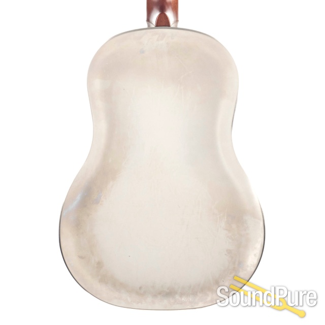 The NRP Steel features a steel body but instead of the painted finish of the “B” Series instruments, it boasts a rubbed nickel exterior that gives the guitar a deep, lovely sheen. Just like the original 1930s Nationals, it has flat-cut f-holes and a ribbed sieve-hole resonator coverplate. The Honduran mahogany neck with truss rod is topped by an ebony fingerboard and slotted headstock. And like the B Series NRP guitars, the tone is incomparable, echoing the tone of a vintage National.