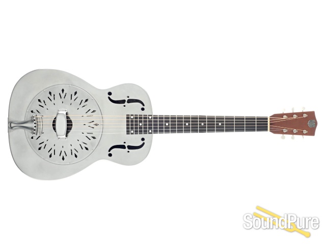 Raw Series instruments are available in steel, brass, and German silver and feature a hardrock maple neck and a chicken-foot resonator coverplate. 12-Fret models have a slotted headstock and flat-cut F-holes while 14-Fret models have a peghead and rolled F-holes.