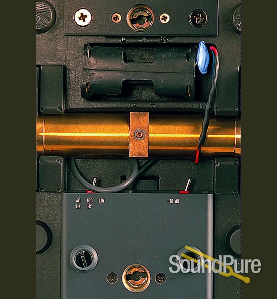A 10 dB switch inside the head attenuates the sensitivity. A second switch selects the cutoff frequency of the high-pass filter to be either linear, 40 Hz, or 150 Hz.