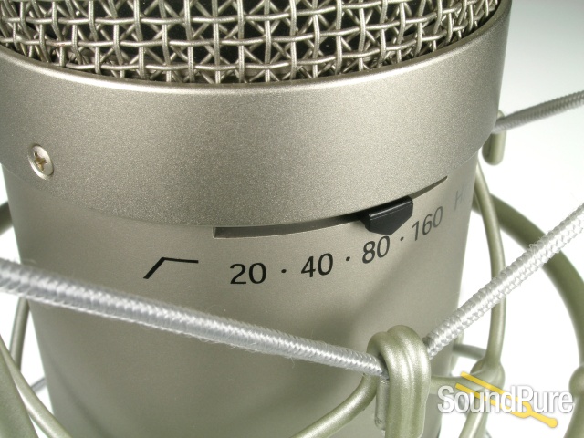 A seven-position slide switch is located on the back of the microphone. It selects a high-pass filter, advancing in half-octave steps between 20 Hz and 160 Hz (-3dB). This filter is useful to suppress rumble from air-conditioning and in windy situations.