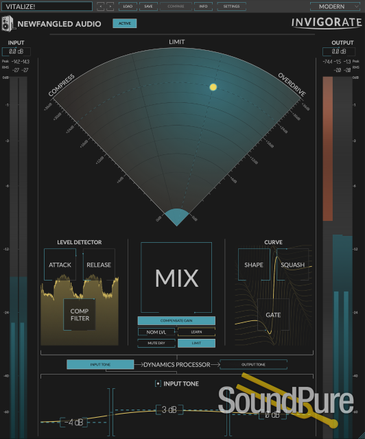 Here’s a little secret: compression, limiting, and overdrive are all the same thing—and all of them can be used to add energy and excitement to your music. Invigorate is a deconstructed compressor, limiter, and overdrive distortion fine-tuned to add life to your mix, drum bus, or any other element. The intuitive design allows you to effortlessly morph from pumping compression, through hard-hitting limiting, to rich distortion while dialing in the perfect sound with the prominent MIX control. The result is guaranteed to bring your mix forward and make it sound bigger.