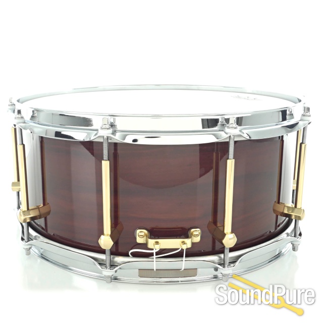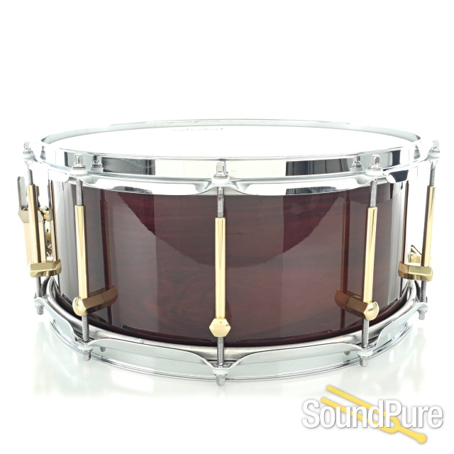 Noble & Cooley's Classic snare drum is one of the few solid shell snare drums in its price point that exceeds its value. The Classic utilizes solid brass components offered in a polished brass which is standard or in a chrome plated finish for a small upcharge. The lugs, like the CD Maple, stay in tune with precision and ease. These lugs are solid and attached with single screws at the nodal point. This offers a nice minimal contact point on the shell and allows the shell to resonant at maximum efficiency. Their drawbridge style throw is simple, elegant, and quiet. This drum performs well in multiple tuning ranges. In the medium and high tuning ranges, this drum offers sparkle and clarity from the center of the drum to the edges with ease. The lower range of the cherry shell has more bottom than the maple version of Classic line. Truely an amazing snare for the money.