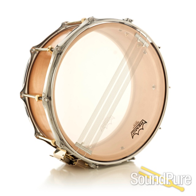 SOLID SHELL: The heart of this drum is the beech shell. We take a piece of 1/4" solid beech, hand-picked for grain consistency, and run it through a steam bending process that hasn't changed since the Civil War. A single piece of wood will vibrate far more freely than a piece constructed of multiple plys. Accordingly, a single ply shell will vibrate (resonate) more freely than the multi-ply shells that are most commonly used in drum manufacture. This resonance is what gives the SS Classic it's characteristic warmth and legendary bite. These drums are available in Maple, Oak, Cherry, and Tulip either 3 7/8", 5" or 7" deep for a completely customizable sound.