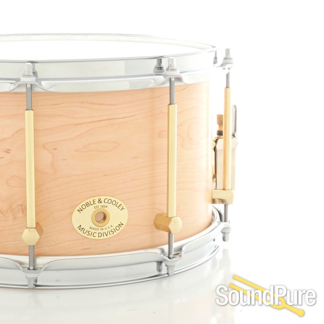 This 7x12 Noble & Cooley SS Classic Snare Drum is a steam bent maple shell with solid brass lugs and a natural oil finish.