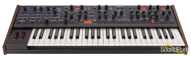 The OB-6® is a once-in-a-lifetime collaboration between the two most influential designers in poly synth history, Dave Smith and Tom Oberheim. The OB-6 takes the classic bold Tom Oberheim sound — with its true voltage-controlled oscillators, 2-pole filter, and amplifiers — and adds modern enhancements such as studio-quality effects, a polyphonic step sequencer, an arpeggiator, and more. No other modern analog poly synth can boast such a pedigree or such a massive, in-your-face sonic signature.