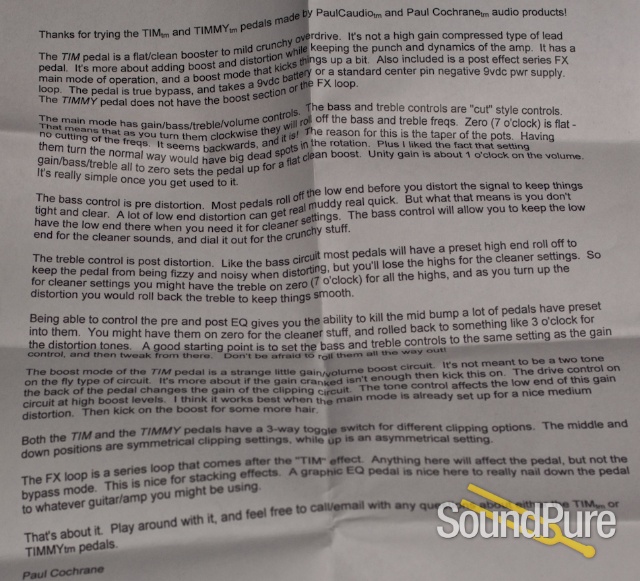 Go on the gearpage.net forums and you'll see many threads and posts about the Paul C Tim and Timmy overdrive pedals. They're fairly rare, and extremely sought-after overdrive pedals that offer transparency and flexibility.