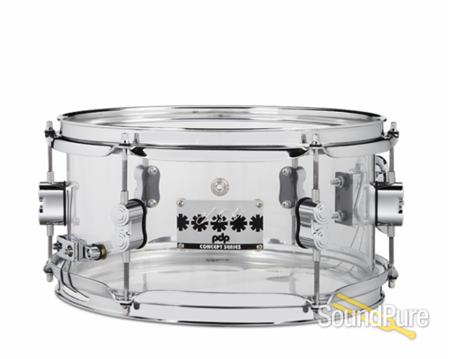 The clear acrylic Chad Smith model features a seamless shell and is available as 6x12” (PDSN0612SSCS) and 7x13” (PDSN0713SSCS) side snares, as well as a beefy 6x14” (PDSN0614SSCS) main snare.