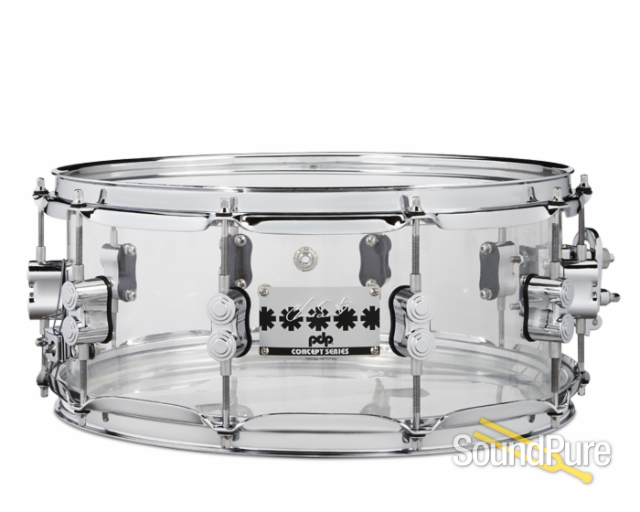 The clear acrylic Chad Smith model features a seamless shell and is available as 6x12” (PDSN0612SSCS) and 7x13” (PDSN0713SSCS) side snares, as well as a beefy 6x14” (PDSN0614SSCS) main snare.