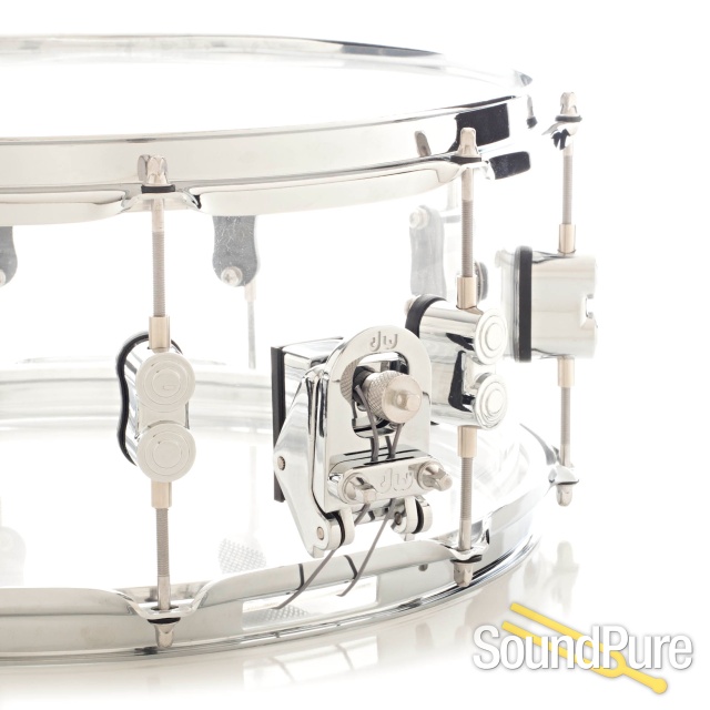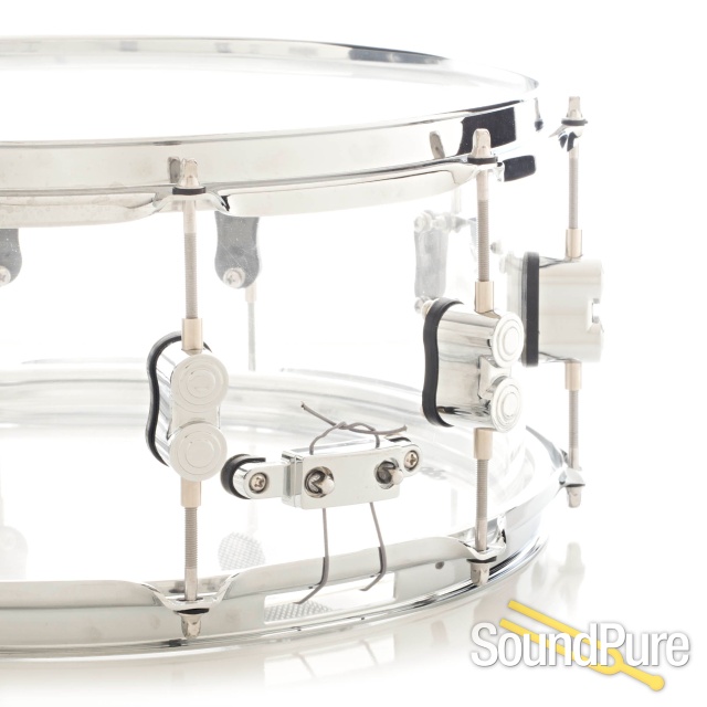 The clear acrylic Chad Smith model features a seamless shell and is available as 6x12” (PDSN0612SSCS) and 7x13” (PDSN0713SSCS) side snares, as well as a beefy 6x14” (PDSN0614SSCS) main snare.