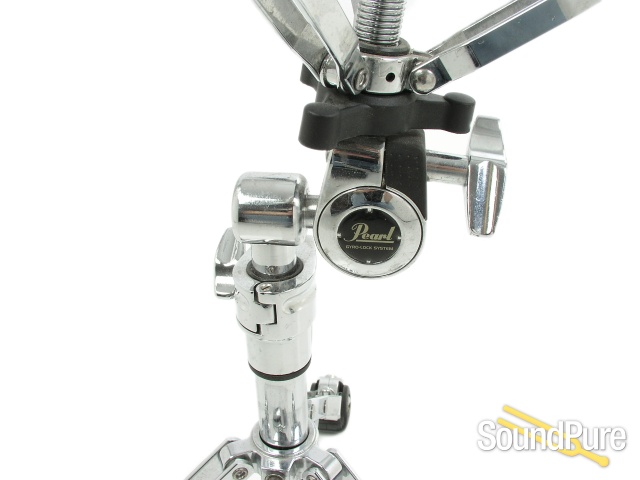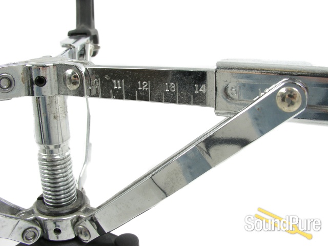 The basket on the Pearl S2000/C Eliminator Snare Stand adjusts for different size drums (10"-16"). It features Uni-Lock tilter and double-braced legs with reversible spike/rubber tips.