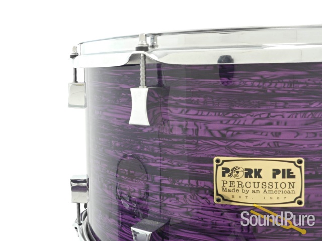 Pork Pie is one of the few companies that uses a proportion shell configuration. The toms have thin 6 ply maple shells without reinforcing rings and sing with a long and smooth decay. The floor toms have a 7 ply maple shell and the bass drum has an 8 ply shell with all plies less than 1/4" thick providing a tremendous amount of sustain.