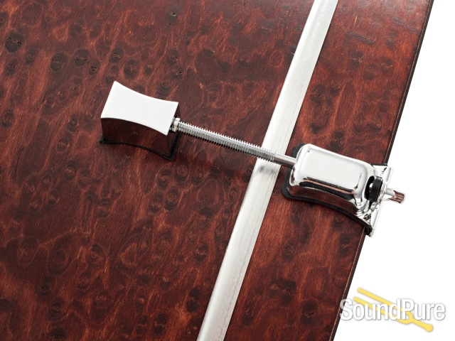 Pork Pie is one of the few companies that uses a proportion shell configuration. The toms have thin 6 ply maple shells without reinforcing rings and sing with a long and smooth decay. The floor toms have a 7 ply maple shell and the bass drum has an 8 ply shell with all plies less than 1/4" thick providing a tremendous amount of sustain. The Brandied Peach veneer is finished in an oil finish which accentuates the grain patterns while also allowing the drums to resonate at their maximum potential.
