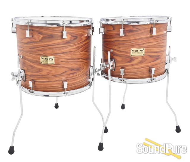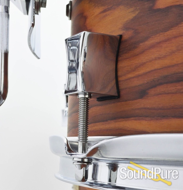 Pork Pie is one of the few companies that use a proportion shell configuration. The toms have thin 6 ply maple shells without reinforcing rings and sing with a long and smooth decay. The floor toms have a 7 ply maple shell and the bass drum has an 8 ply shell with all plies less than 1/4" thick providing a tremendous amount of sustain. The Rosewood veneer is finished in an oil finish which accentuates the grain patterns while also allowing the drums to resonate at their maximum potential.