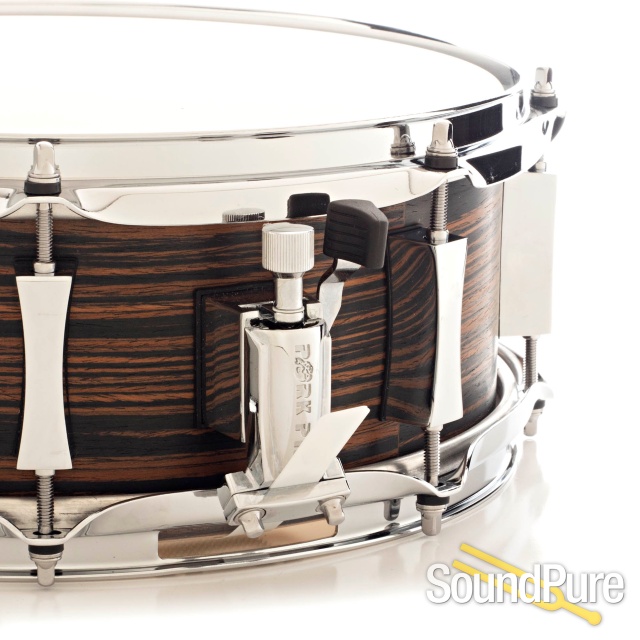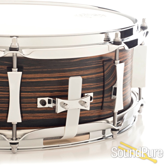 Pork Pie fuses the rich warmth of a 5x13 maple shell with the striking beauty of a Macassar ebony exterior.