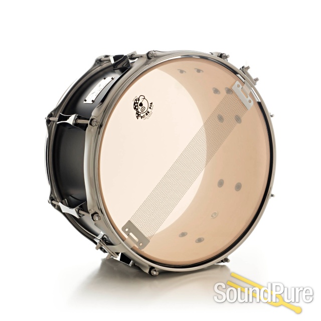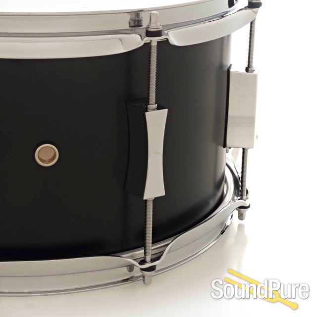 The Pork Pie Little Squealer Snare Drum is crafted from a hybrid birch/mahogany. This Pork Pie snare boasts a Flat Black finish, all chrome hardware, cast hourglass lugs, and 2.3mm heavy-duty hoops. Bearing edges are hand-sanded and precision cut. Pork Pie builds the Little Squealer snare with painstaking attention to detail.