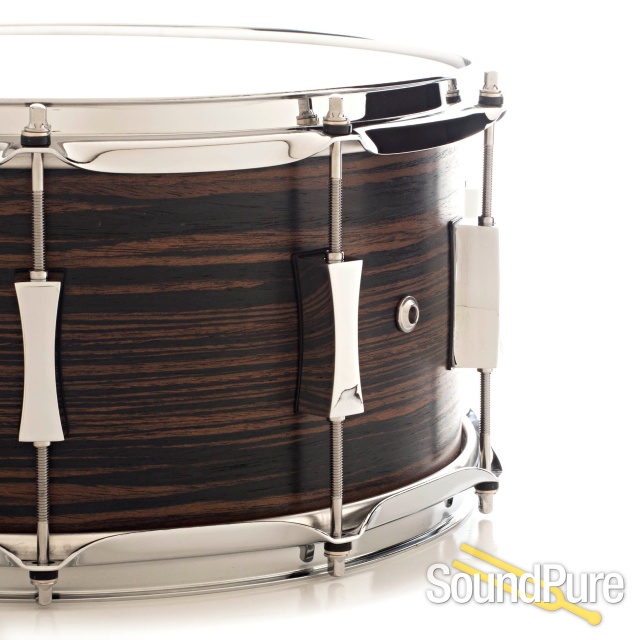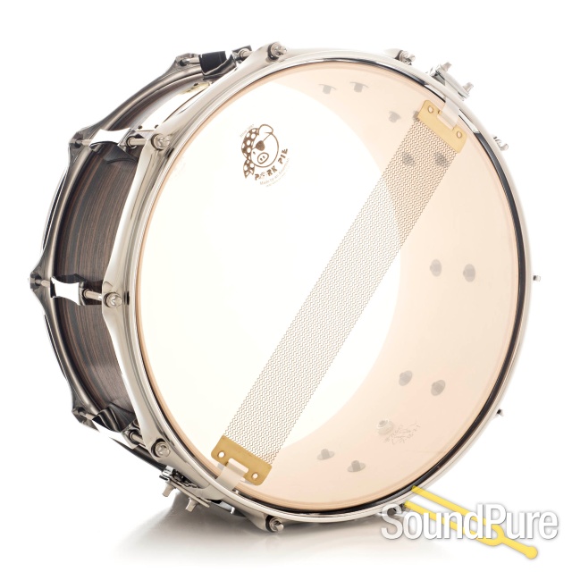 Pork Pie fuses the rich warmth of a 7x13 maple shell with the striking beauty of a Macassar ebony exterior.