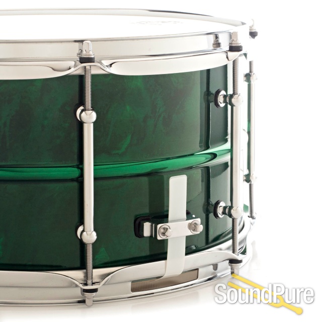 Pork Pie has been making waves in the drum industry with their great sound and eye-catching products. The Painted Brass Snare Drum with Tube Lugs is a great example of this. The 8 low mass chrome over brass tube lugs bring a clean look to the drum without taking away from the beauty of the painted finish. This snare has great depth, body, and articulation making this an easy fit in your home, live, or recording playing situations. Discover one of the quintessential classic snare drum sounds today.