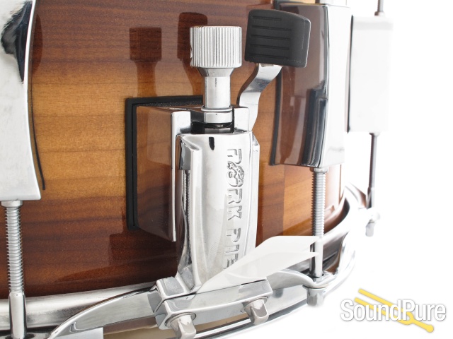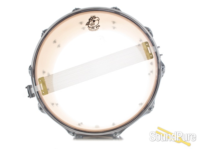 For a lively snare with incredible clarity, you can't go wrong with this Pork Pie snare drum. This drum features an 8 ply maple shell with a gorgeous Fumed Aspen outer veneer finished with a natural gloss. It's got a meaty attack with an exceptional snap, and it's very sensitive too - ghost notes come alive, and rimshots cut through every time.