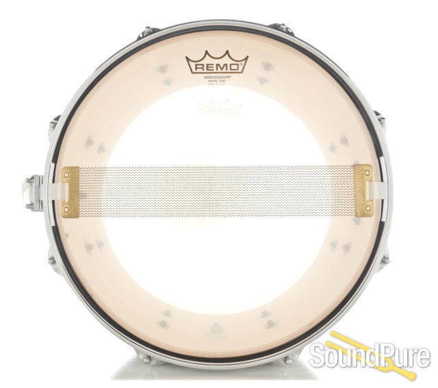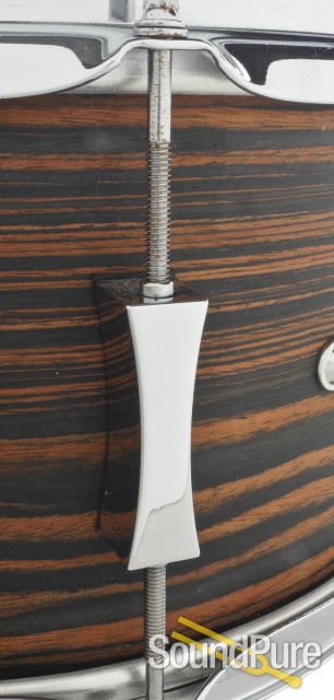 Pork Pie fuses the rich warmth of a 7x13 maple shell with the striking beauty of a Macassar ebony exterior. Excellent condition.