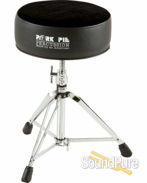 This Pork Pie Percussion Round Top Throne is wide and comfy. Heavy padding helps the seat remain comfortable even after a long gig. Full seat rotation, height adjustability, and strong double-braced legs keep the whole thing very secure. It won't feel like you're about to fall over. Pork Pie offers plenty of color options to accessorize your drum set. Heavy duty vinyl sides and a plethora vinyl, raised swirl, and Cordura tops will help you find your true self. These seats feel as good as they look.