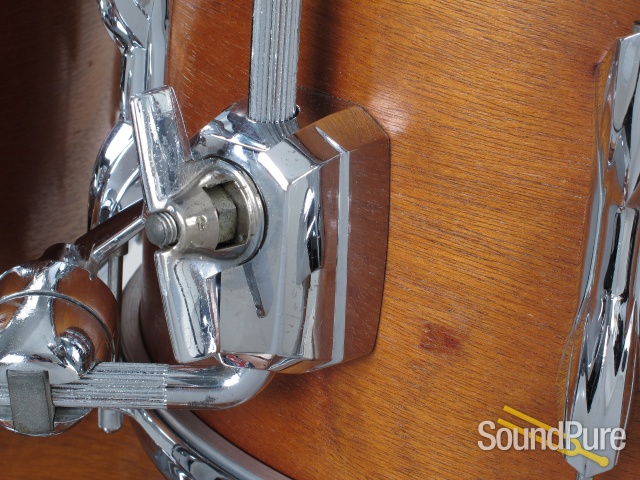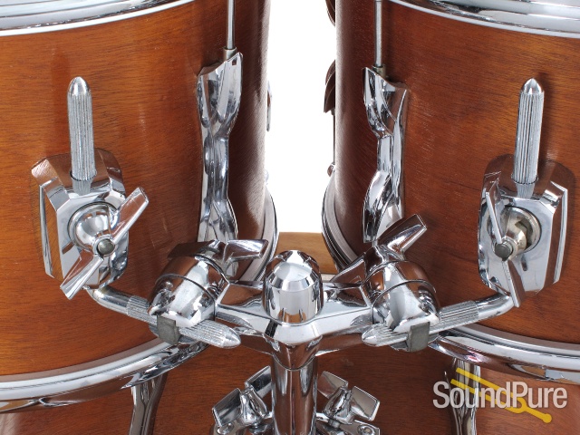 Warm and focused drums made in England. These drums are impressive and all parts appear to be original. Chrome is in good condition with minimal pitting and shells are in fair condition. All drums have reinforcing rings and the toms have die cast hoops. The exterior shells show minor scuffs with no major damage or extra holes. Overall good shape for a natural finish set from the 70s.
