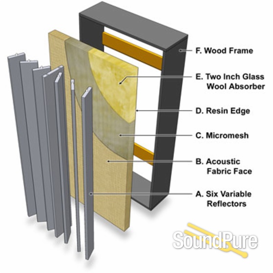 The Primacoustic FlexiFuser is an innovative acoustic device that combines diffusion with absorption to disperse high frequency flutter echo and control primary reflections at the same time.