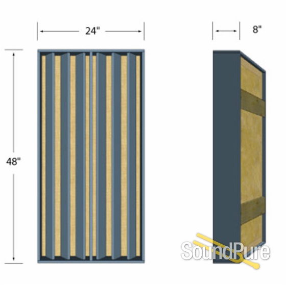 Measuring 24" x 48" (60.96cm x 121.92cm), the FlexiFuser is equipped with six variable pitch slats that span the full top-to-bottom height. These are rotated at varying angles to disperse high frequencies, creating the desired energy spread that best suits the room and seating position. Behind the slats is a high-density 2" (5.08cm) thick acoustic panel that effectively absorbs directional energy down to 250Hz while eliminating resonant build-up behind the slats.