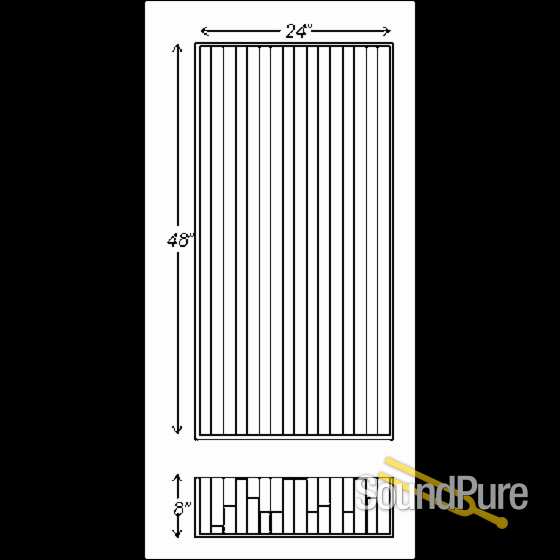 Unlike light-weight plastics that are unable to control powerful low frequencies, the Razorblade combines heavy, MDF slats with a furniture grade solid wood laminate surround for added mass and rigidity. The grated 24" x 48" array is made up with a series of 17 deep, narrow wells that will effectively diffuse acoustic energy from 425Hz to over 5.5kHz with excellent scattering down to 200Hz. This makes the Razorblade particularly effective in varients of the LEDE (live-end, dead-end) studio control room designs where several units are typically clustered across the rear wall, spanning the width of the work surface.