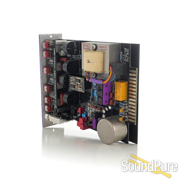 A modern update of the classic “swinging inputs” console EQ, with four easy to use bands. Each band uses a high quality inductor and carefully selected caps to give two switchable frequencies. The bands are carefully shaped and spaced to be musical, even at full boost or cut. The highest band can be switched from bell to shelf, to boost frequencies extending well beyond 20kHz. The lowest band can also be switched from bell to shelf, reaching down into the subsonic range.