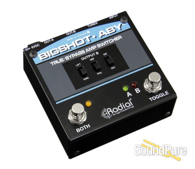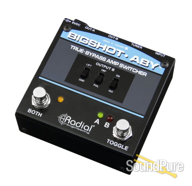 The BigShot ABY™ is a compact true-bypass ABY switcher that enables you to switch between two amplifiers or play through both amps at the same time, while eliminating buzz and hum from ground loops.