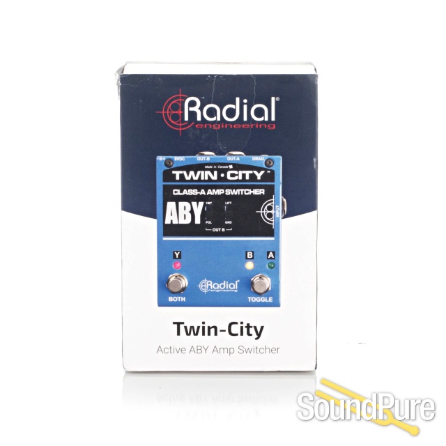 The Twin-City™ is an active amp selector that lets you connect any two guitar amps and switch between them or drive them both simultaneously without noise, loss of gain, or any degradation to your natural guitar tone.