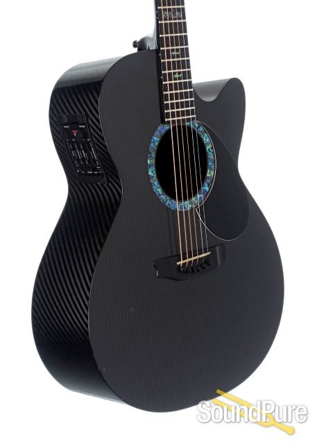 You can go from Niagara Falls to Carnegie Hall with this carbon fiber titan! Seriously, the perils of humidity and temperature are simply not an issue with something like this. Big 'n' punchy, this beast handles a variety of styles surprisingly well. Top of the line Anthem installed, shark inlays included at no extra charge.