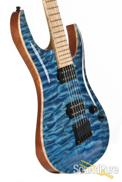 The first thing you'll notice when picking up this guitar for the first time is just how clean and concise everything about this build is. Every line, every curve, every contour seems to be perfectly placed and everything serves a purpose. Aesthetically, this is a stunning build - owing a lot of thanks to the incredible quilted top and the beautiful craftsmanship of the layered neck.