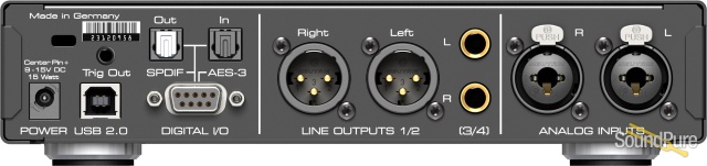 The ADI-2/4 Pro includes two servo-balanced analog inputs on combo XLR / TRS jacks, two separate balanced and unbalanced outputs on XLR and TRS, two stereo Extreme Power headphone outputs on the front for easy balanced operation of all headphones, including IEMs via Pentaconn connector.
