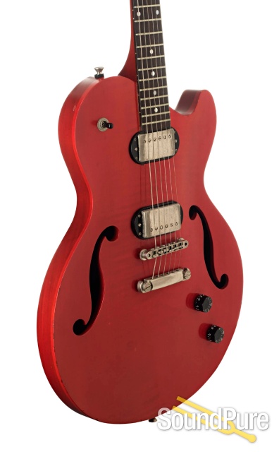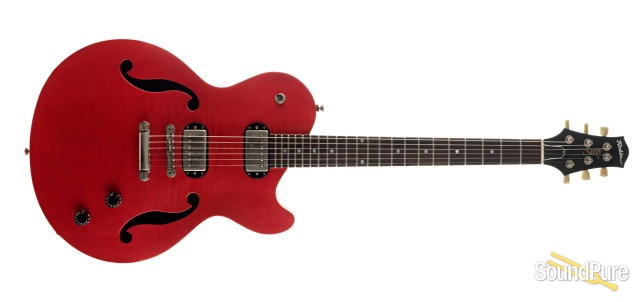 A very unqiue Robin Guitars Savoy with a Mahogany back, Maple top, and Cherry Red satin finish! The folks at Robin told us there aren't many like this one floating around out there!