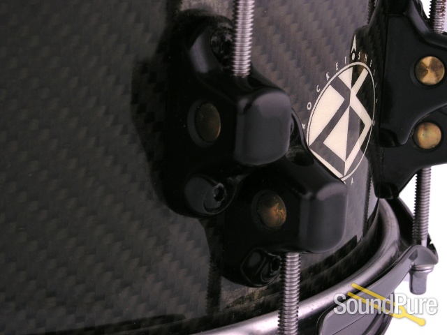 Carbon fiber is a composite material formed by weaving raw carbon fibers into a textile, which is then combined with epoxy resin to form a plastic-like material that is extremely durable, yet lightweight. Drum shells made from this material are lighter than wood, but much stronger; Rocket Shells are guaranteed not to warp, crack, or delaminate for life. At the core of the drum is the patented C-1200 shell (14” only- all other sizes utilize C-900 shell). The bearing edges are carbon fiber, and machine cut to a relatively sharp 45 degrees, then slightly rounded over for optimum head seating. The edges are then wet sanded producing a perfectly smooth edge which will last a lifetime. The snare bed is faired from edge to the center gradually, which minimizes stress on the bottom head. The cast carbon fiber lugs are coated with a crystal clear finish, and outfitted with a polished brass barrel nut, which offers smooth as butter tensioning. The Nickelworks strainer and low mass butt plate are strong and smooth and light