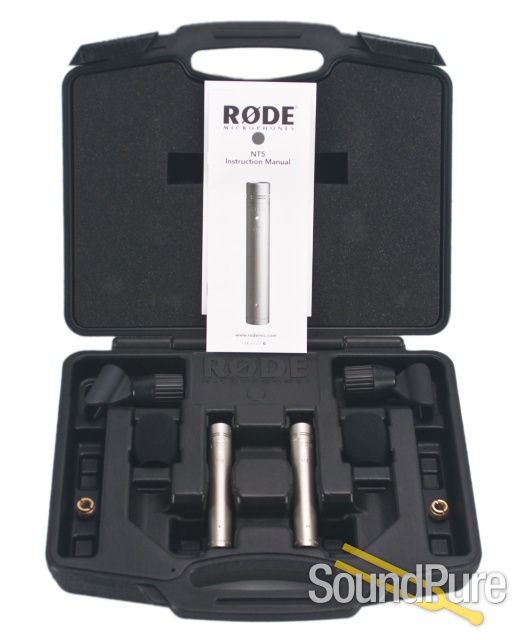 The NT5 is RØDE's premier small-diaphragm cardioid condenser microphone, sometimes referred to as a "pencil mic." Intended for recording acoustic instruments, drum overheads, cymbals and live performances, the compact externally polarized mic employs a 1/2" capsule, and an active J-FET impedance converter with bipolar output buffer.
