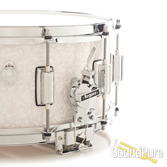 Rogers 6.5x14 Wood Dynasonic Snare Drum-White Marine Pearl Quick 'n' Dirty