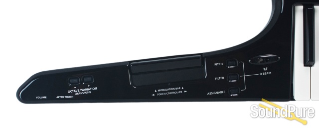 Controllers: D-Beam, Ribbon Touch, Modulation Bar, Volume Knob Controller, Aftertouch Knob Controller, Portamento On/Off, Hold button On/Off, Bender Mode: Normal/Catch+Last